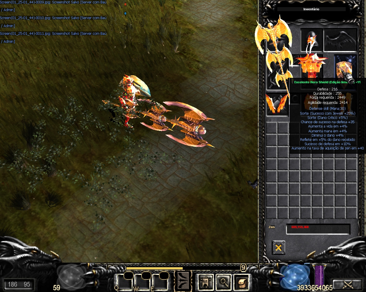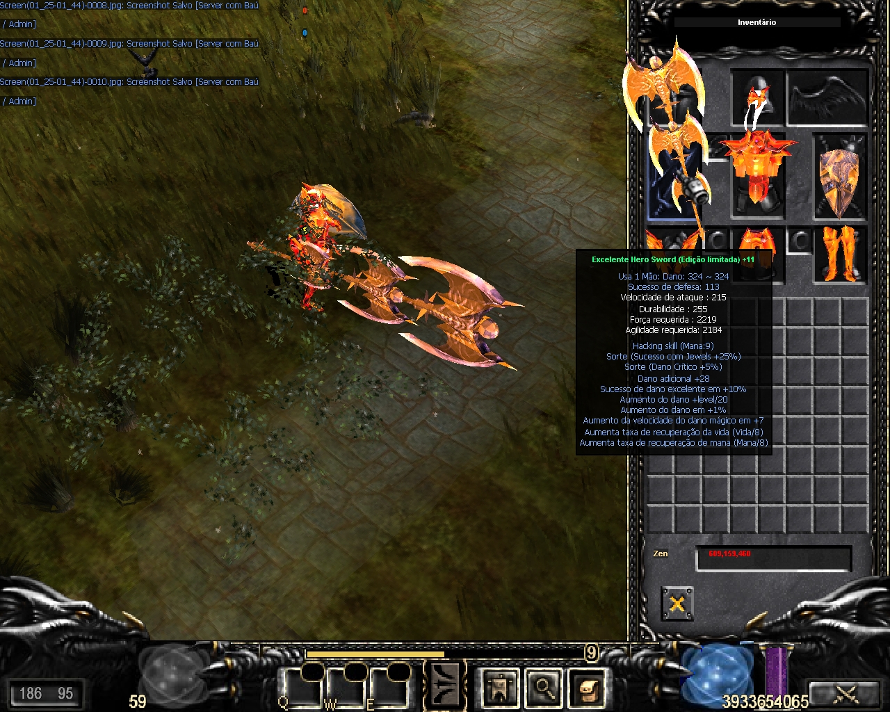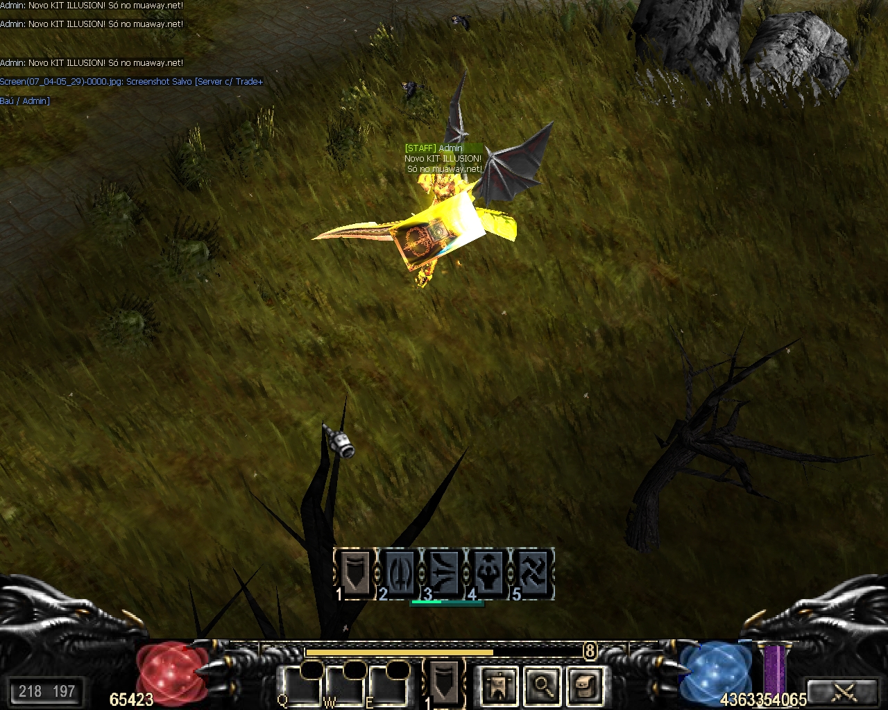 Olá, Galera, estamos lançando nessas férias o mais novo e forte KIT do servidor, o mesmo é composto por um set, uma sword e shield, muitos irão dizer mais Admin já tem uma Sword chamada Illusion, porém nós a renomeamos para Hammer, sendo que o KIT fica ainda mais completo com a Hammer, e assim todos tem maior variedade de combinação. O Kit está na seção de Itens Especiais, foi testado e aprovado, está excelente para o PvP, porém é claro que ele não faz milagre, sempre a habilidade e uma boa combinação irá contar muito, mais a defesa do mesmo está muito boa se comparada com a do Especial Set 05 que atualmente é o TOP. Segue abaixo os OPTIONS dos itens: Segue abaixo umas Screen Shoots tiradas dentro do jogo do novo Kit: É isso galera, o custo do Set está quase o mesmo do Especial Set 05, cada parte dele custa 85 GoldsWay's (porém até o dia 15/07 o SET estará custando no shop 60 goldsway's cada parte, depois irá ficar com um preço fixo de 85 goldsway's), a Illusion Sword está custando 150 GoldsWay's e a Illusion Shield está custando 70 GoldsWay's, na atual promoção de Férias o KIT completo saindo a preço de banana com pacotes de até x12. Clique aqui e saiba mais detalhes da Promoção de Férias. Set já disponível à venda no shop à goldsway's, na seção de "ITENS ESPECIAIS". Galera essa é só uma das várias novidades que estaremos trazendo nesse mês de férias, vamos começar agora com muitos eventos. Atenciosamente, Equipe MuAwaY - Projetando e construindo a sua diversão!85 points