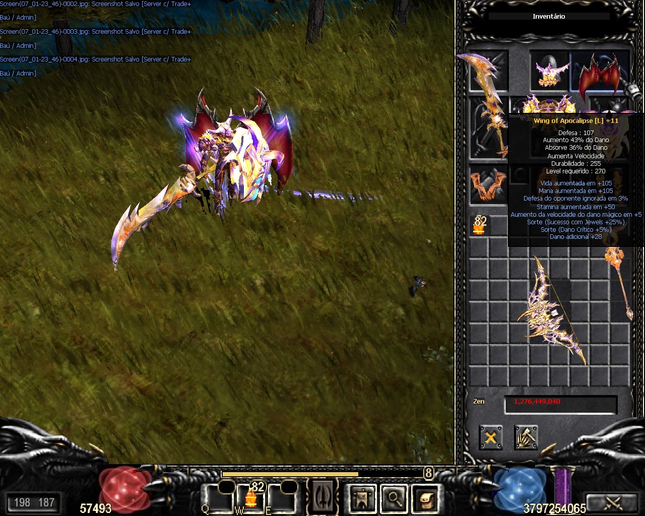 77 pointsKoé Seus fluminense sem Unimed , vi ontem um tópico de um cara que queria saber onde dropava pena , não tive oportunidade de responder , mais vi que todos os membros que responderão disseram que pena não dropava no servidor , ESTÃO DESINFORMADOS , Pena dropa SIM , eu sempre que preciso delas não compro de ninguem , pois sei que os membros que vendem costuman cobrar um preço alto por elas e pelos outros itens de corajoso , alguns sim dropam , outros não , e se dropam confesso que não sei onde é , uma vez consegui vender 2 penas por uma rlk+sh chr , ou seja membros desembolsam rlk por 2 penas sei que rlk esta desvalorizada mais mesmo assim pena é um item simples , um item que ele mesmo pode conseguir , ou seja é falta de informação pois talvez o membro visualiza um tópico que diz que pena não dropa e dai a unica solução caso queira participar de eventos é comprar , muitos não tem paciência pra dropar , pois realmente é muito dificil , quando preciso fico cerca de 20 min pra dropar uma , porém não preciso comprar nada. Bom A localização da pena é em /icarus3 , Nos montros Phamton Kinight , muitos vão dizer que não dropam , então fui lá e dropei uma so pra provar OBS : Pena não pode ser jogada ao chão , então não tem como eu ter jogado somente para printar Monstro que dropa Pena dropada Outros drops abaixo Medalha Prata ou ouro /move losttower7 ou /devias2 Coração do amor /devias2 ou /arena Ale /npcpk ou /arena7 Então é isso pessoal , pra quem não quer gastar itens caros no jogo com a pena que é vendida por muitos por um preço caro , ta ae a solução , lembrando que tanto faz ser em sala vip ou em c/spot , tem gente que ja sabia que dropava , mais tem muitos que não , então foi so uma ajuda , tmj77 points