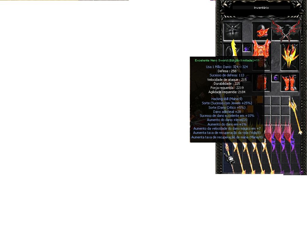 Olá, Galera, estamos fazendo mais uma grande lançamento, uma nova sword edição relíquia, e como já é de custume a mesma será super rara, valorizada e díficil, serão poucos os meios de obter ela, irei listar alguns abaixo: Quote * Leilões Especiais - De tempo em tempos iremos realizar leilões especiais com essa arma. (Leilão começa às 19:00 do dia 14/11 e encerra às 19:00 do dia 15/11. * Chaos Machine - Essa arma será liberada durante 15 dias na Chaos Machine, porém sua combinação será muito dificil e cara. Combinação dela estará disponivel à partir do dia 15/11. * Shop GoldsWay's - A principio não iremos por essa arma à venda, porém se formos colocar pode ter certeza que ela irá custar + de 1.000 GoldsWay's. * Eventos ou Ranking - Poderemos premiar ganhadores de determinados eventos, ou ranking. Motivo: Nossa meta é que tenha apenas 50 unidades dentro do jogo, não é impossível que tenha mais, pois como falamos iremos controlar a quantidade porém não limitar a um número máximo, porém os meios para conquistar a mesma será muito díficil. Segue abaixo informações da nova arma: Curtam a mais nova raridade do servidor! Atenciosamente Equipe MuAwaY - Projetando e construindo a sua diversão!156 points