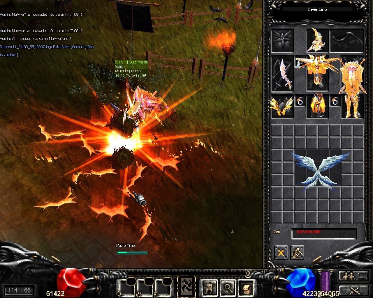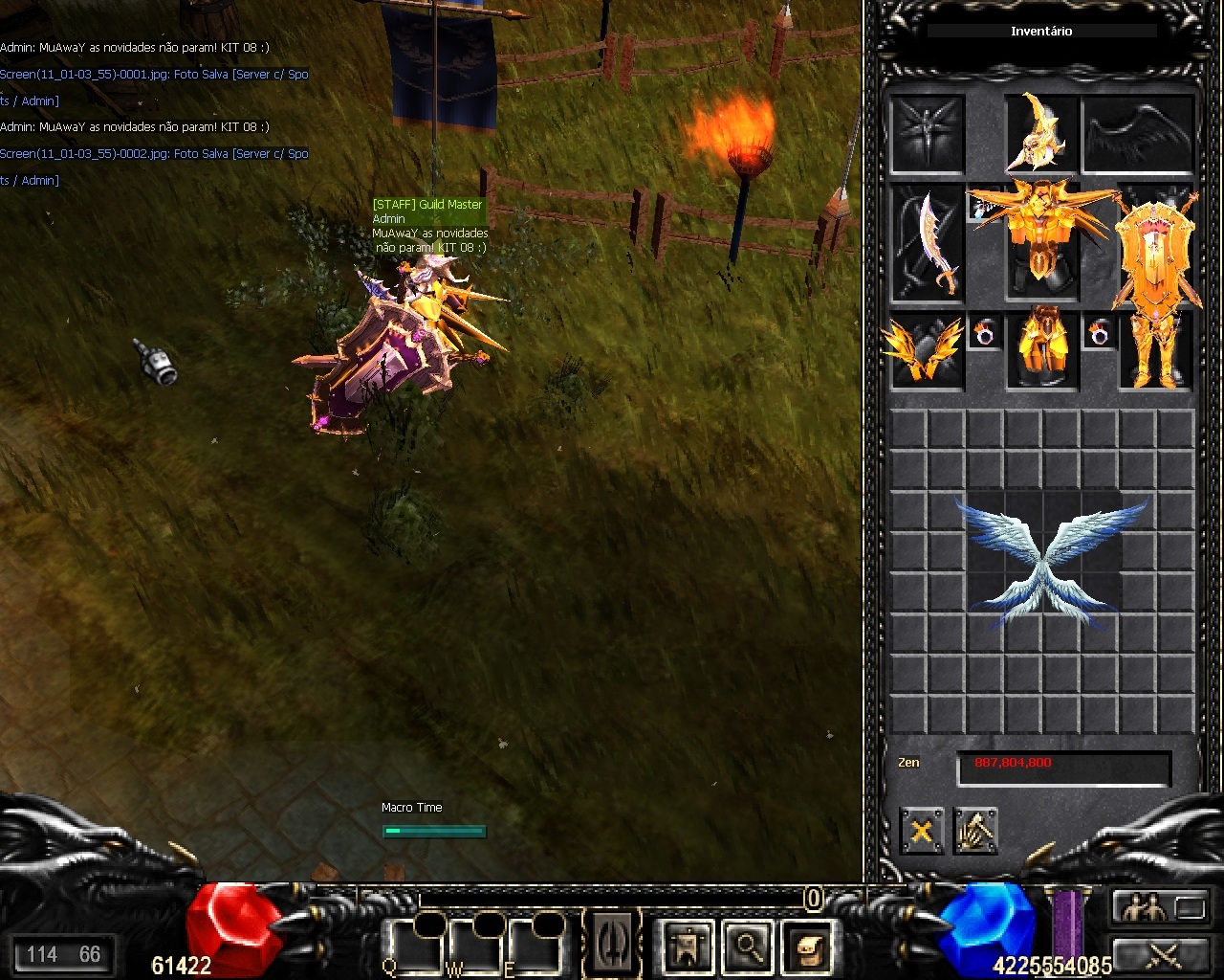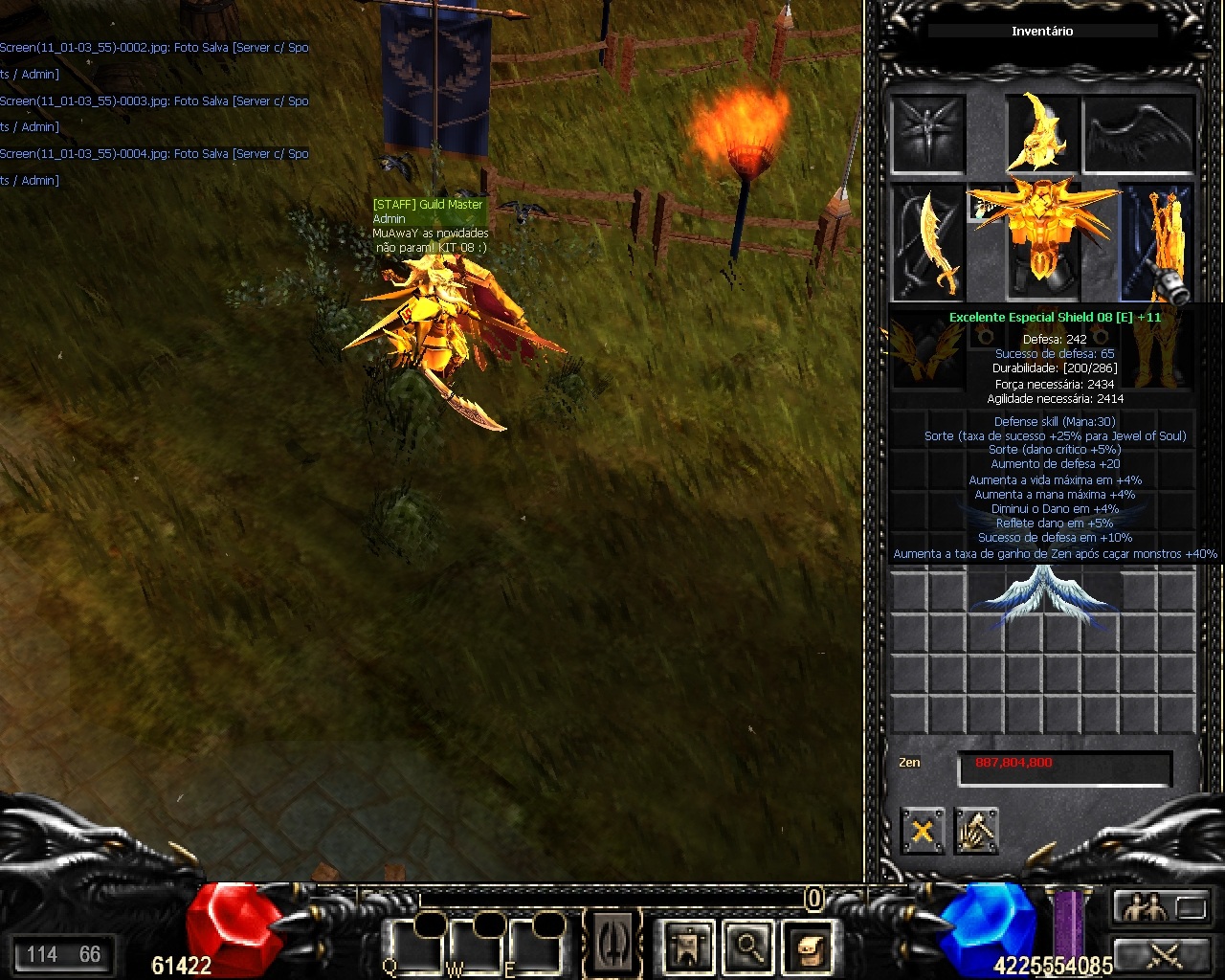 É ESPECIAL, É ASA, É NOVO ITEM, TANTO FAZ, IMPORTANTE QUE É MUAWAY! Achou que Halloween ia passar em branco? MuAwaY comemora tudo, de Janeiro à Dezembro diversão somente aqui. Achou que estava bom? Nós melhoramos, agora está bom? Estamos trabalhando para melhorar ainda mais, agora o desafio é inovar a revolução que acabou de começar. Tendeu? Quem disse que tamanho é documento? Você que é fã da Kriss Sword, nós estamos lançando uma arma pensando em você. Eu lhe apresento a Especial Sword 08 [E], que vem acompanhada do Especial Set 08 [E] e Especial Shield 08 [E]. E para os SM's, MG's e Elf's, nós preparamos algo diferente isso mesmo a Asa level 3 de SM que pode ser usado por essas 3 classes, porém o BK fica de fora. Wing of Eternal é a Asa level 3 para SM, que pode ser usado por MG e Elf também. Você sabe que atualmente temos o Pedant of Fire e o Ring of Ice né? Agora temos o Pendant of Ice e Ring of Fire, isso mesmo, agora os par estão completos. APRESENTAÇÃO DO OPTIONS: SCREEN SHOTS: PREÇO: Quote Itens já estão disponível no Shopping de GoldsWays - SET: 125 GoldsWays cada parte. - SWORD: 280 GoldsWays cada parte. - SHIELD: 120 GoldsWays cada parte. - ASA: 300 GoldsWays cada parte. - RING: 25 GoldsWays cada parte. - PEDANT: 25 GoldsWays cada parte. Atenciosamente, Equipe MuAwaY - Projetando e construindo a sua diversão!