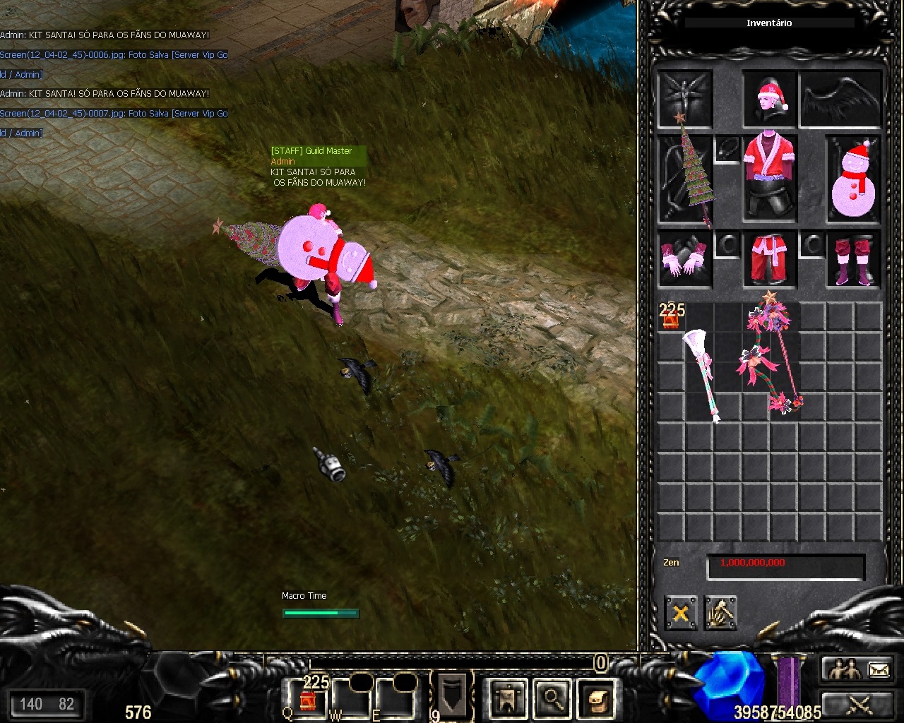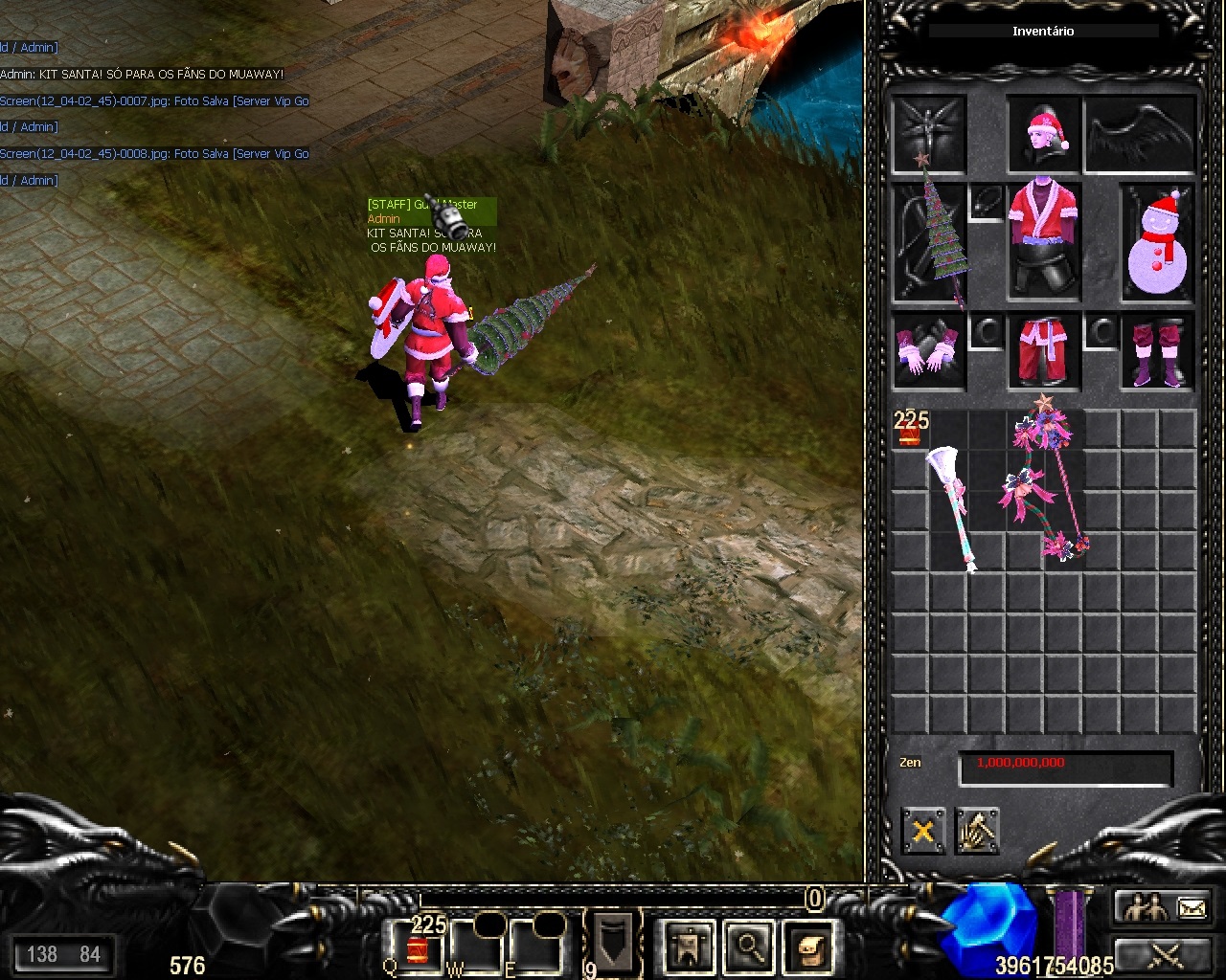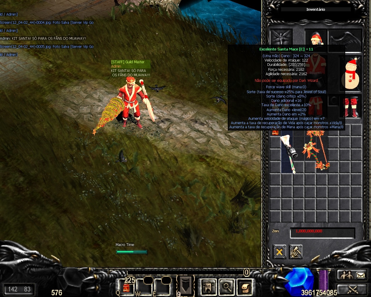 NATAL ÉPICO MUAWAY - PARTE 2! 2012 inesquecível Já imaginou ser dono de um KIT ou um item com poucas unidades no servidor? Aqui no MuAwaY você pode ter um KIT que não é vendido no shopping. Um Kit de colecionador que é limitado por data comemorativa. Garanta o seu! Leia com atenção! Quote SOBRE O KIT: - Santa Set, usado apenas por DK/BK. - Santa Sword, usado apenas por DK/BK. - Santa Staff, usado apenas por DW/SM e MG. - Santa Shield, usado por todas as classes. - Santa Bow, usado apenas por ELF/ME. - Santa Mace, usado apenas por DK/BK e MG. COMO CONSEGUIR: Esse KIT não será vendido no Shopping de Golds e GoldsWays porque ele está na categoria de Colecionador, ou seja, é apenas para os fãs do MuAwaY e será usado em brindes de Promoção de Natal e raros eventos, (por ser temático do Natal. Será dado em eventos e promoções nesse mês de dezembro) e quem contribuir durante a Promoção de Natal de 2012 entre R$100,00 e R$199,00 poderá escolher um brinde do KIT SANTA exceto o SET. Quem contribuir entre R$200,00 e R$349,00 poderá escolher um brinde qualquer do KIT SANTA podendo optar pelo SET. E quem contribuir acima de R$350,00 receberá o KIT SANTA completo de presente.. Após sua contribuição ser confirmada você deverá enviar um e-mail para: natal@muaway.net, contendo o seu login e o brinde escolhido, se caso sua doação for acima de R$350,00 você não precisa enviar e-mail pois, receberá todo o KIT em um dos seus baús automaticamente em até 48 horas após seu pagamento ser confirmado. OPTIONS KIT SANTA: SCREEN SHOT'S: Atenciosamente, Equipe MuAwaY - Projetando e construindo a sua diversão!